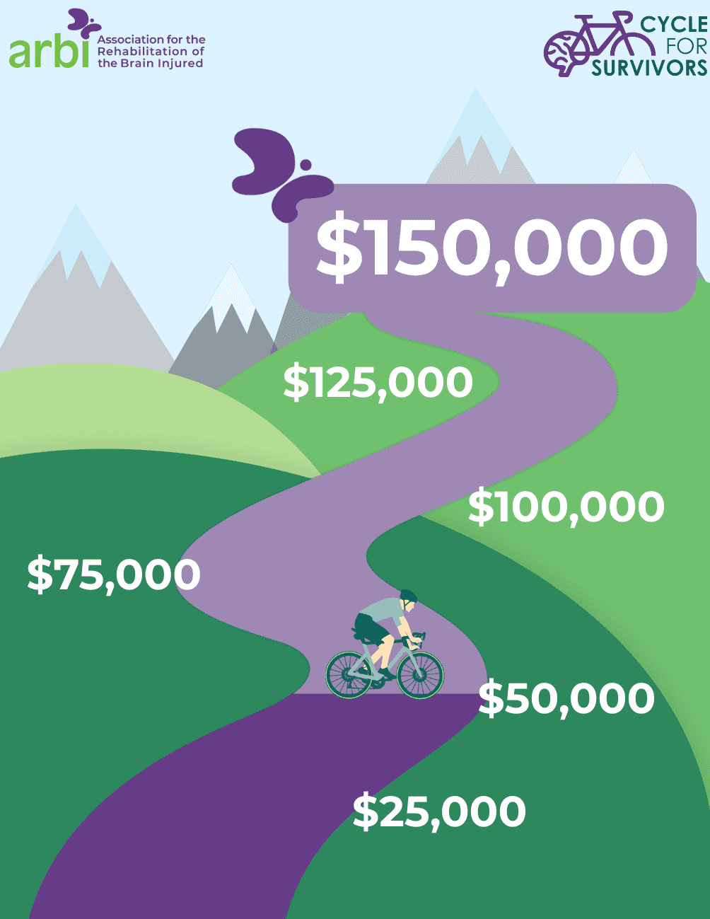 Your gift helps ARBI cross the $150,000 finish line, fueling life-changing rehabilitation and support for brain injury survivors and their families.